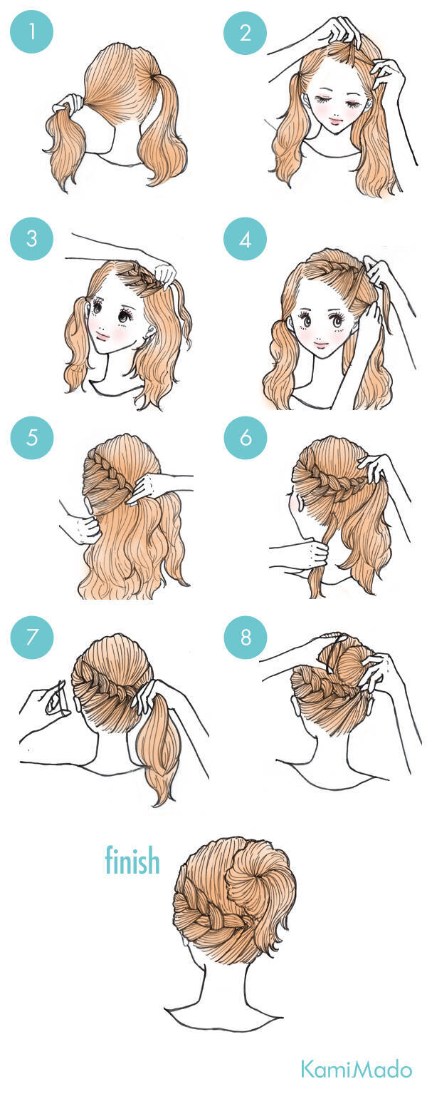 ガーリーなプリンセス風編み込みヘアアレンジ イラスト付き ー髪のお悩みやケア方法の解決ならコラム Eparkビューティー イーパークビューティー